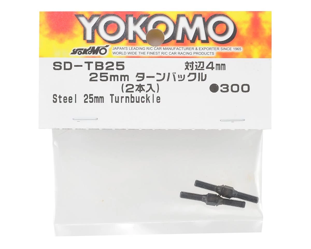 This is a pack of two replacement Yokomo 25mm Steel Turnbuckles. These turnbuckles feature adjustability and are compatible with the YR-X12 pan car.Â