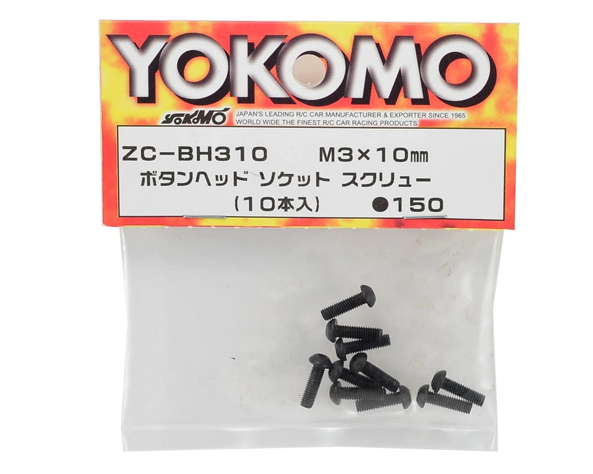 This is a pack of ten replacement Yokomo 3x10mm Button Head Hex Screws.Â