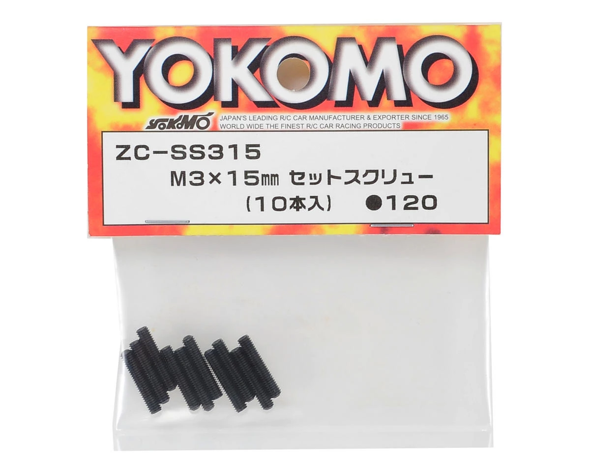 This is a pack of ten Yokomo 3x15mm Set Screws.Â