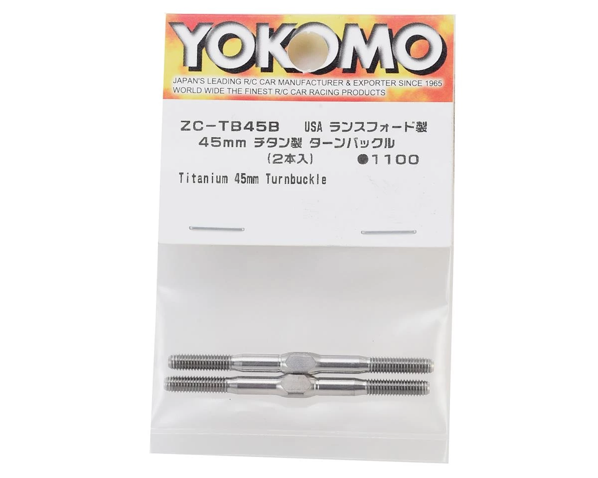 This is a pack of two optional Yokomo 45mm Titanium Turnbuckles, for use where a 45mm long turnbuckle is needed.