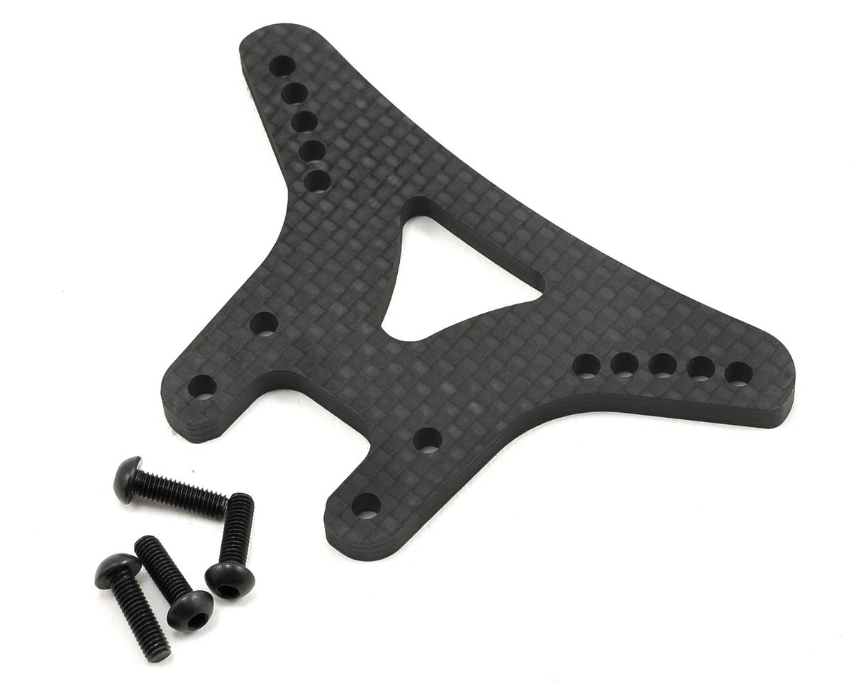 This is an optional Yokomo YZ-4 Carbon Fiber Front Shock Tower for use with the stock flat arms. This tower is 4mm thick and includes mounting hardware.