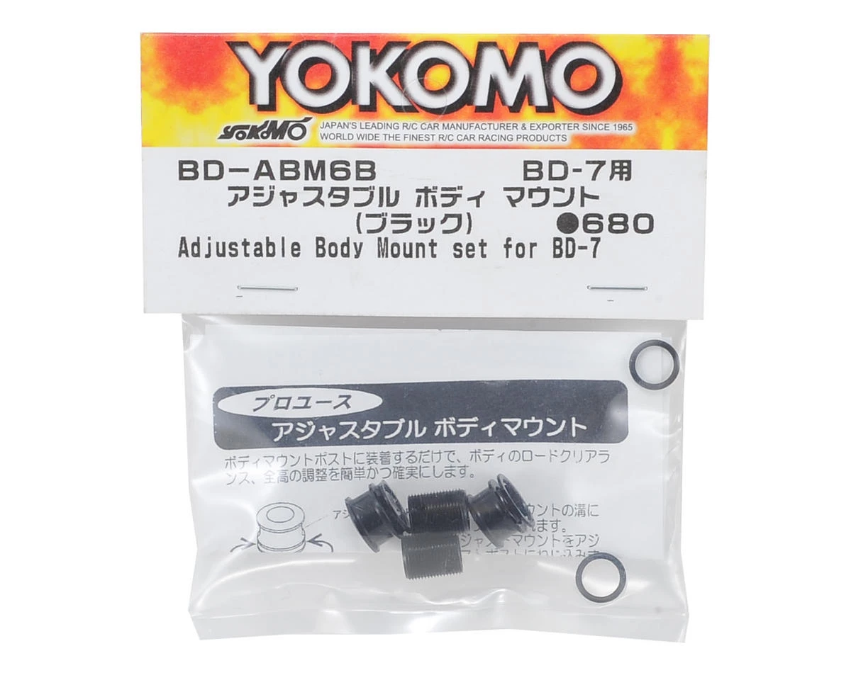 This Yokomo BD7 Adjustable Body Mount set allows you to fine tune the height of the body. These mounts are mounted to the body mount post and fit 6mm diameter posts. These are great for touring cars and drift cars, as they allow you to tune the body height more precisely than with the standard setup.