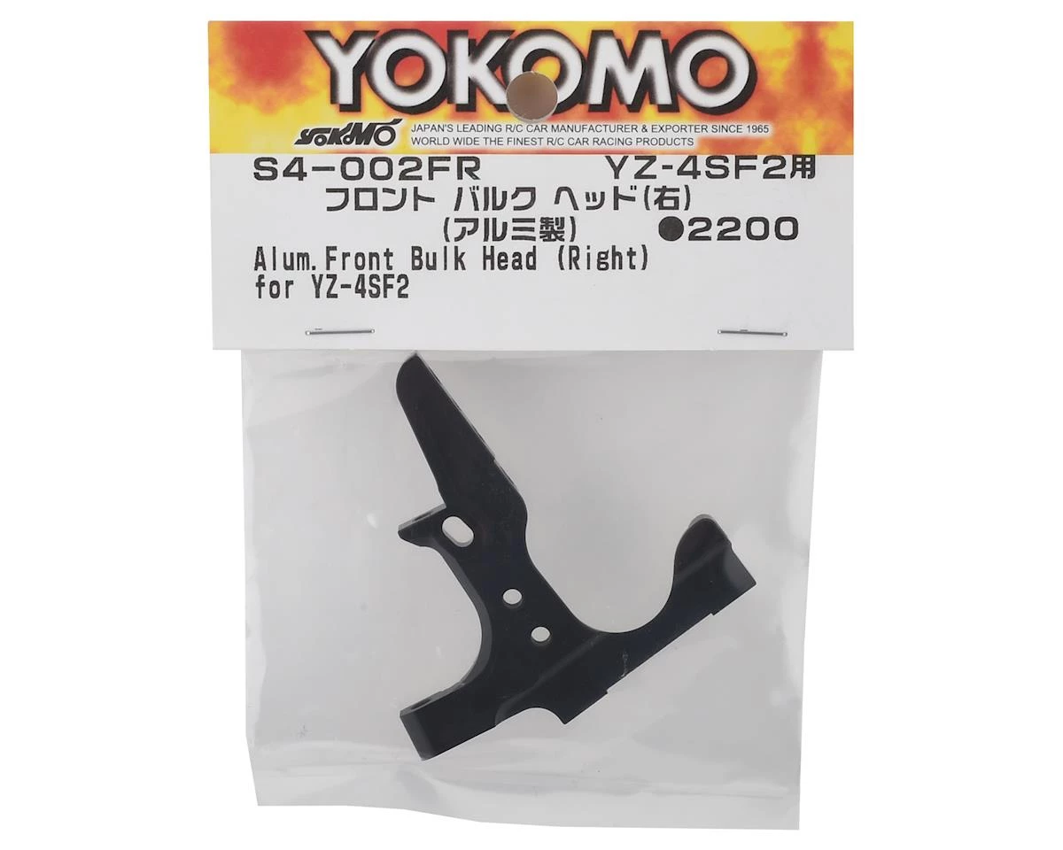This is a Yokomo Right Aluminum Front Bulkhead, intended for use with the Yokomo YZ-4 SF2 Factory 1/10 Electric 4WD Buggy Kit.
