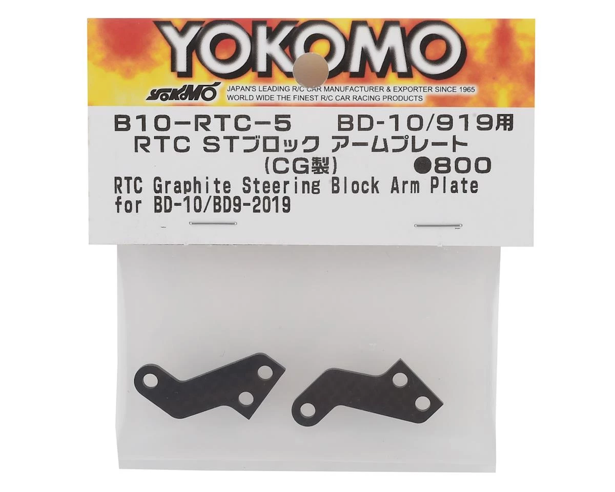 Yokomo BD10 RTC Graphite Steering Block Plates are a replacement for BD10 models, equipped with the optional RTC (Rear Toe Control) System (YOKB10-RTC), but can also be used as an optional upgrade for BD9 models equipped with the RTC System (YOKB9-RTC). Package includes two steering block plates.