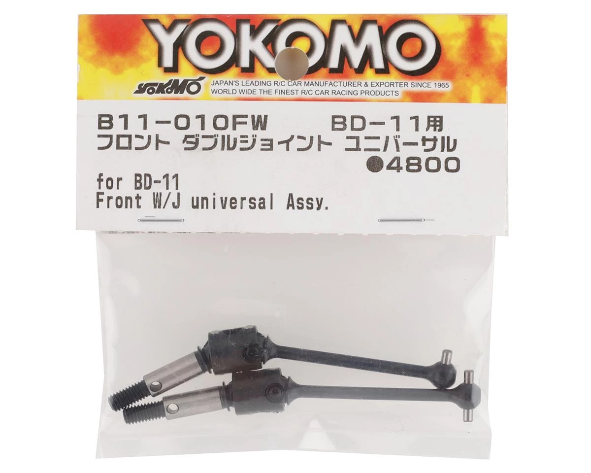 Yokomo BD11 Front Double-Joint Universal Driveshafts. These replacement driveshafts are intended for the Yokomo BD11. Package includes two assembled driveshafts.