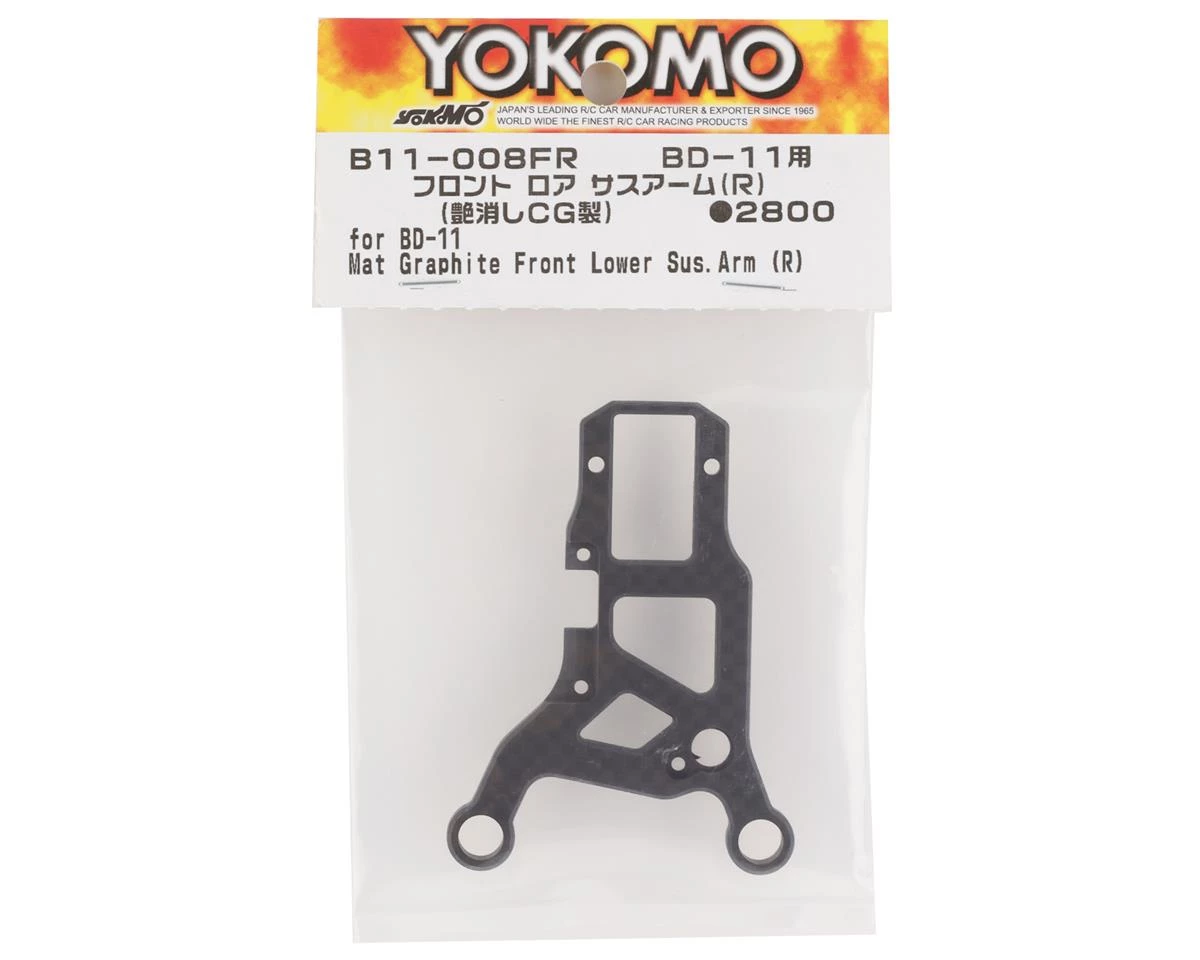 Yokomo BD11 Graphite Front Lower Suspension Arm. This replacement suspension arm is intended for the Yokomo BD11. Package includes one Right lower front suspension arm.