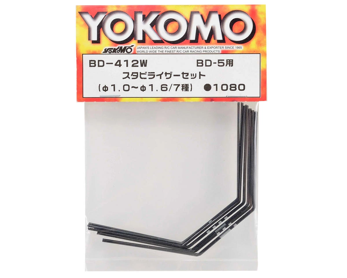 This is an optional Yokomo Stabilizer Set, and is intended for use with the Yokomo BD7 1/10 scale touring car. This set includes seven stabilizer bars in 0.1mm increments. There is a mark on the center of the wire indicating thickness.