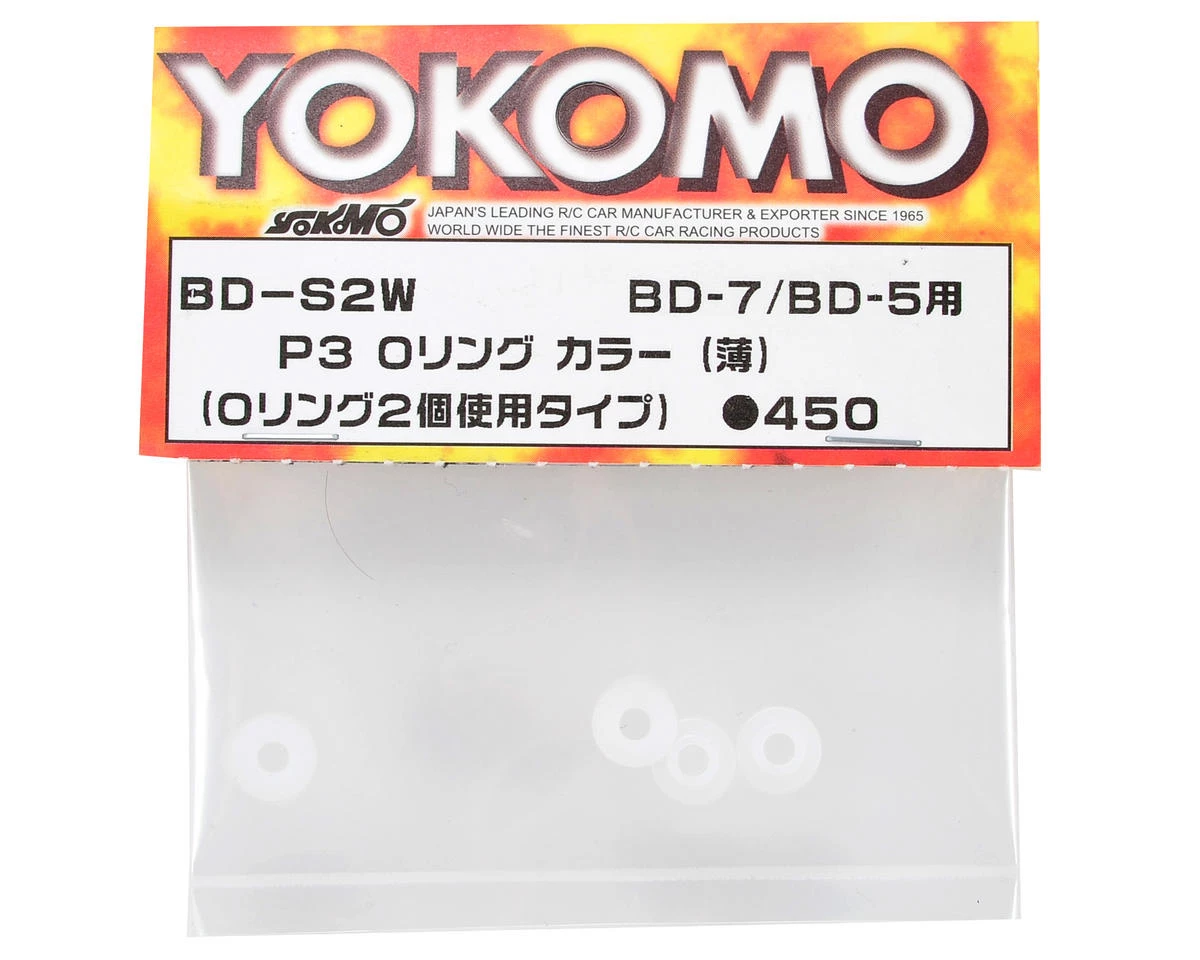This is a pack of four replacement Yokomo P3 O-Ring Collars, and are intended for use with the Yokomo BD7 1/10 scale touring car. These are the thin white o-ring collars that are installed in the shock cartridge.