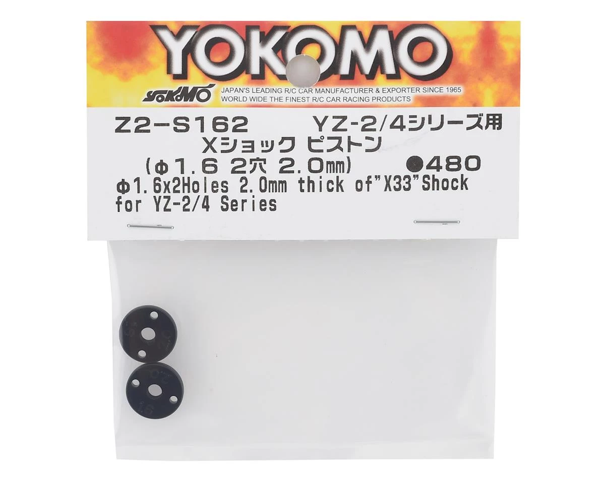 The Yokomo X33 X Shock Piston Set is intended for use with the Yokomo YZ-2 Electric Buggy Kits using X33 shocks. This pack includes of two 2.0mm thick, 2 x 1.6mm hole pistons.