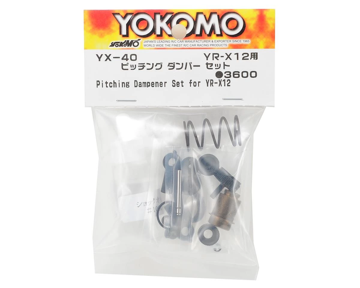 Yokomo YX-40 Pitching Damper Set. This is a replacement shock set for the YR-X12 pan car. Package contains one complete unassembled shock.