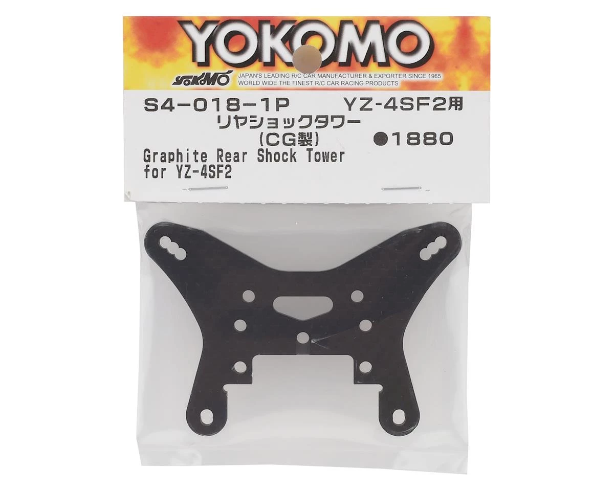 Yokomo YZ-4 SF2 Graphite Rear Shock Tower. Package includes one replacement carbon fiber rear shock tower.