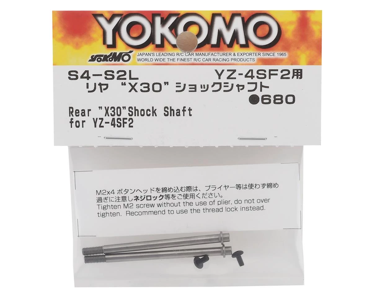Yokomo YZ-4 SF2 X30 Rear Shock Shaft. Package includes replacement shock shafts and screws used to secure the shock piston to the shaft.